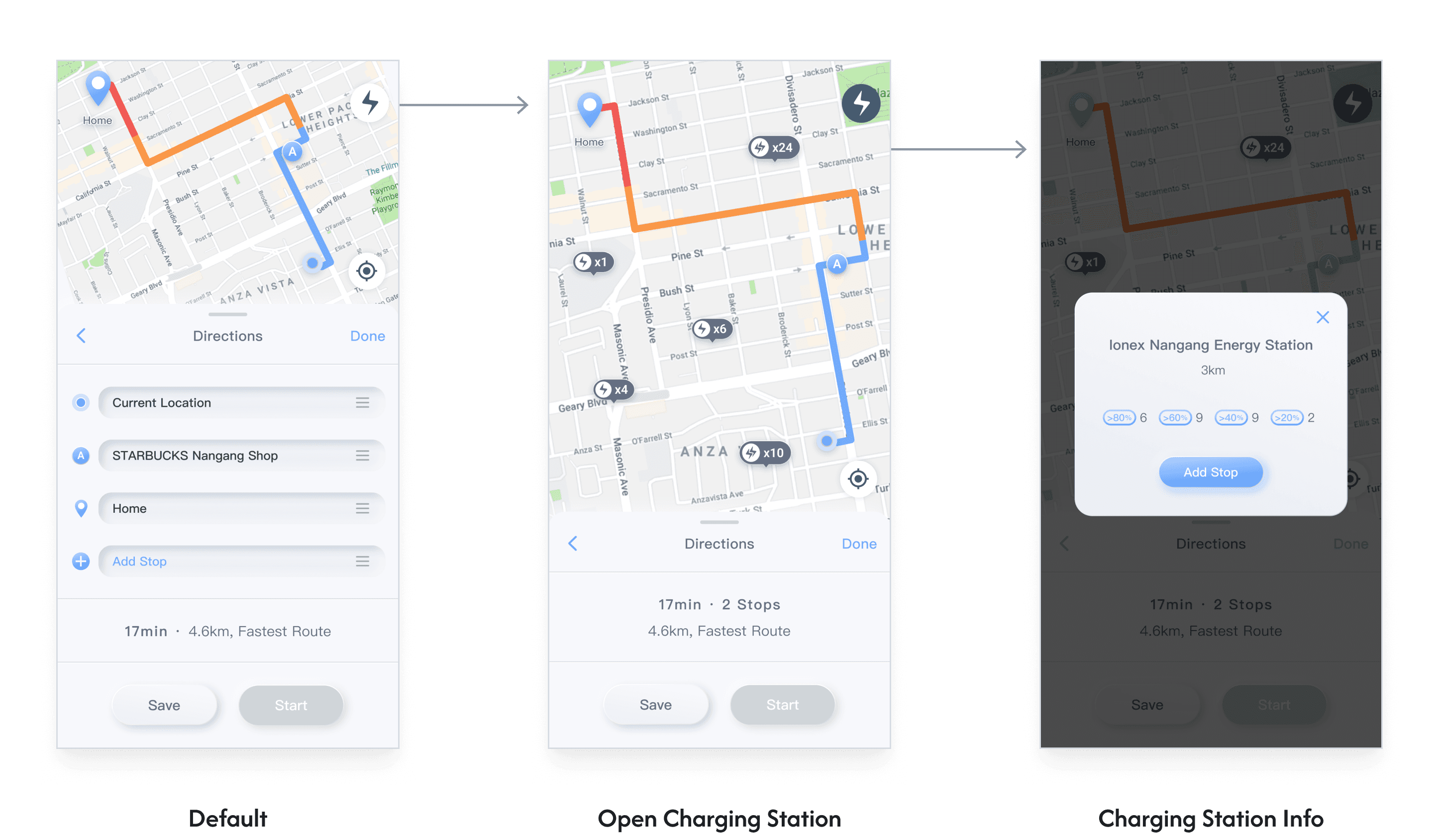 To ensure a more reassuring riding experience for users, we have added quick navigation to nearby charging stations on the map. Users can view the remaining battery count and power levels at each station, offering multiple options to choose from.